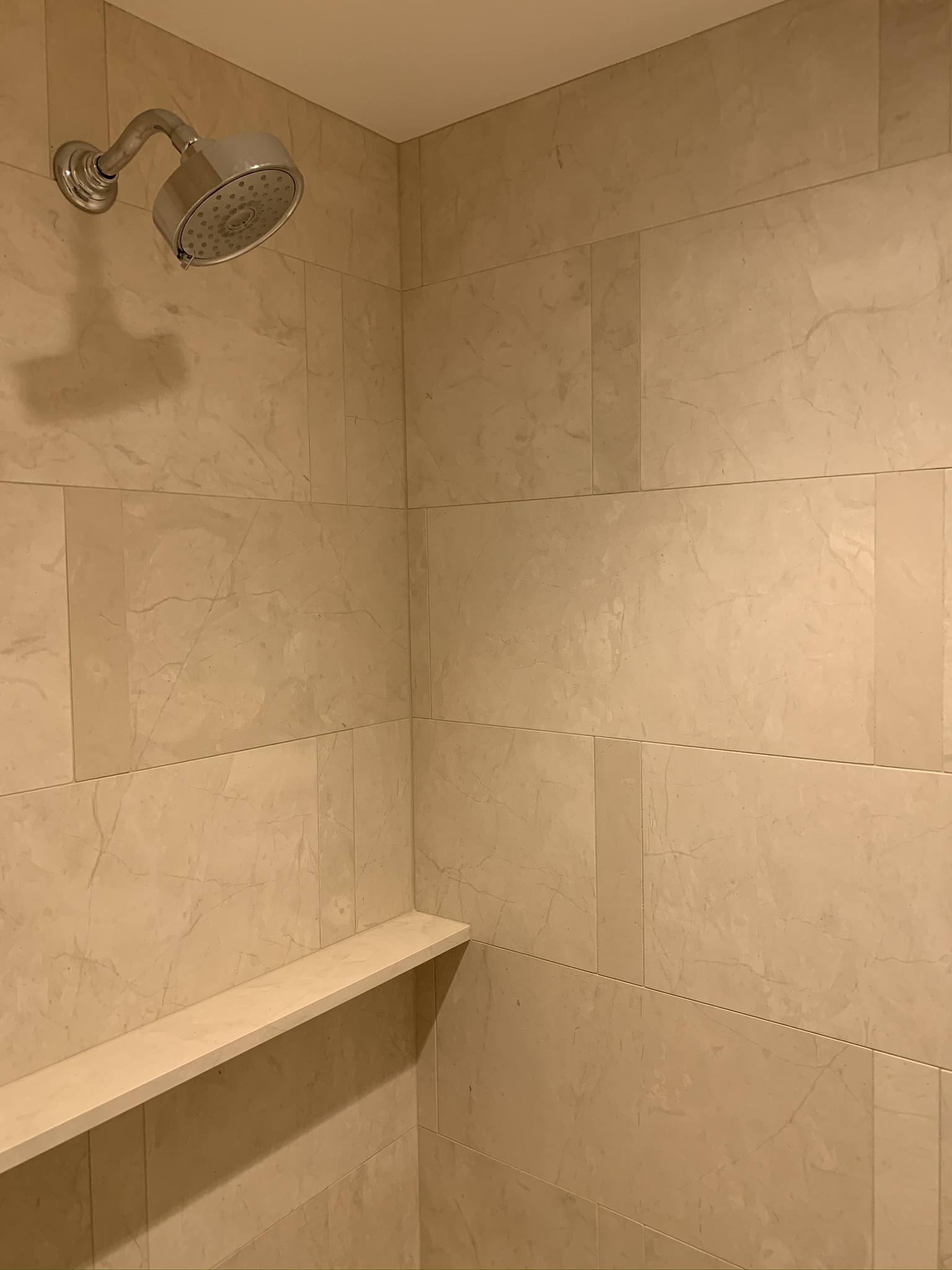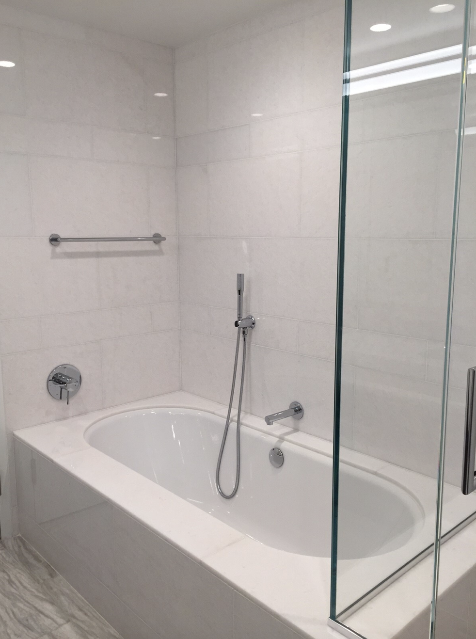Condo Primary Bath Floors: 12″x24″ Bianco Dolomite