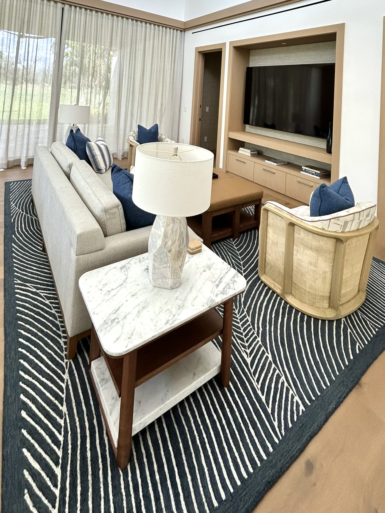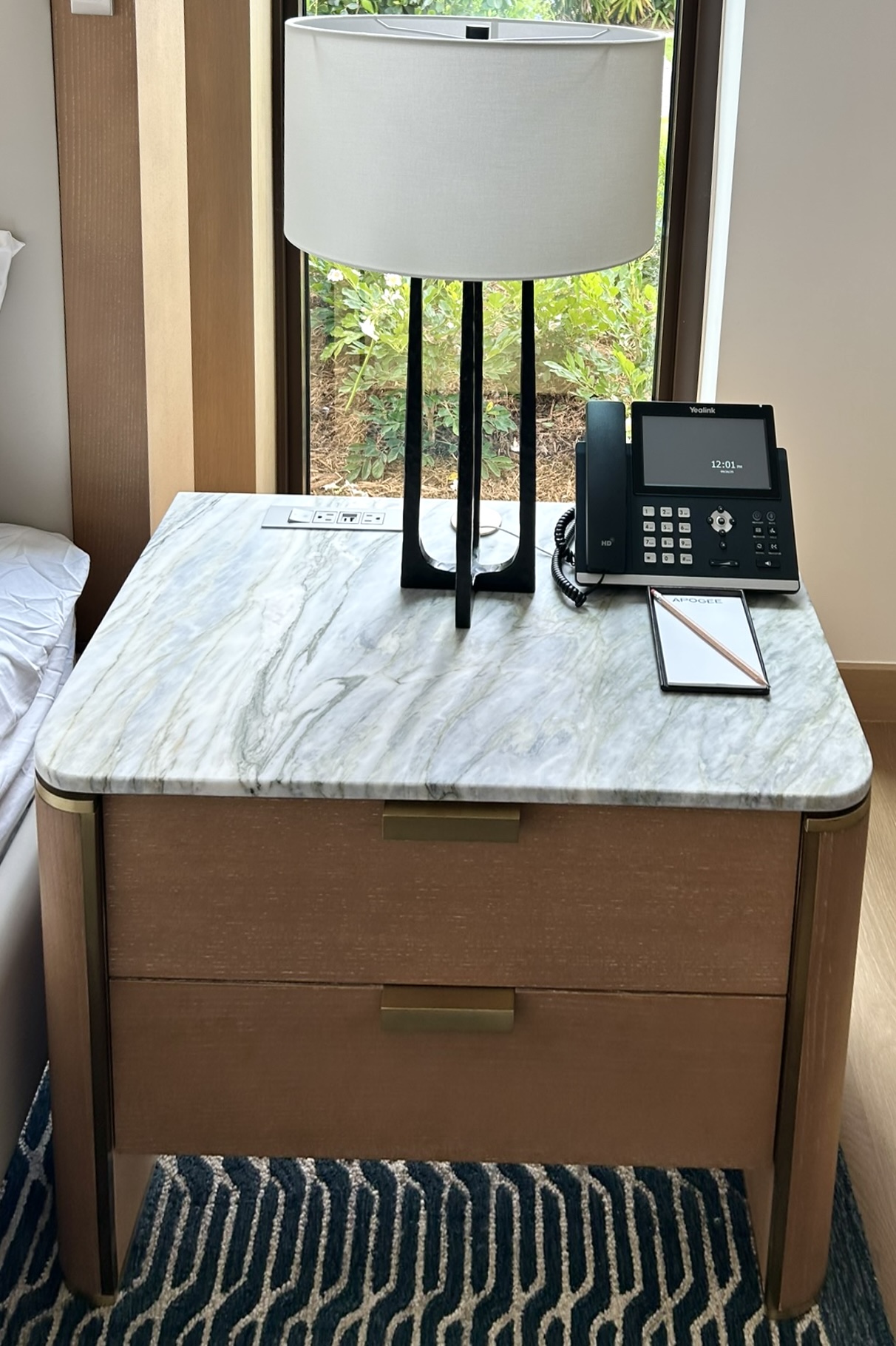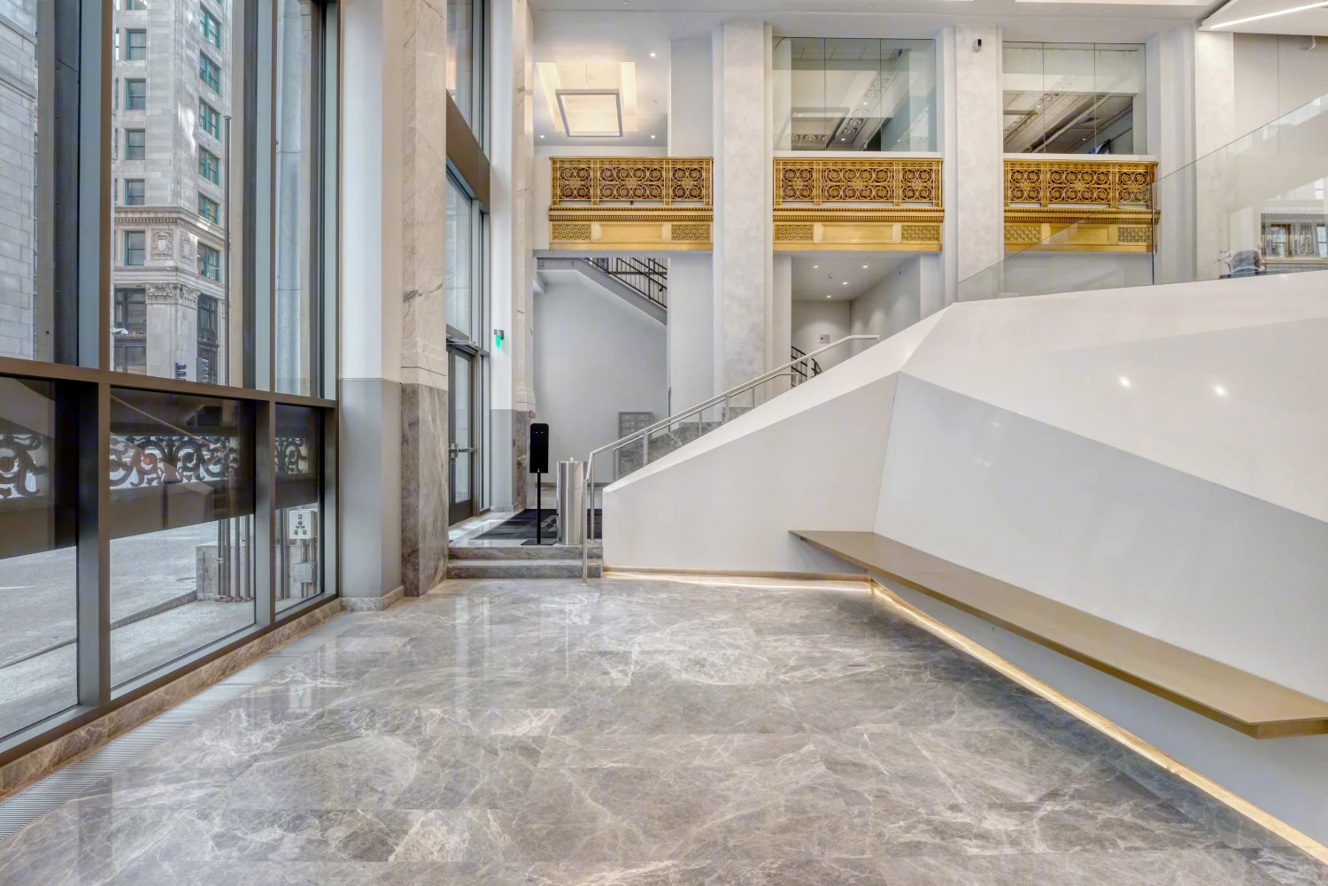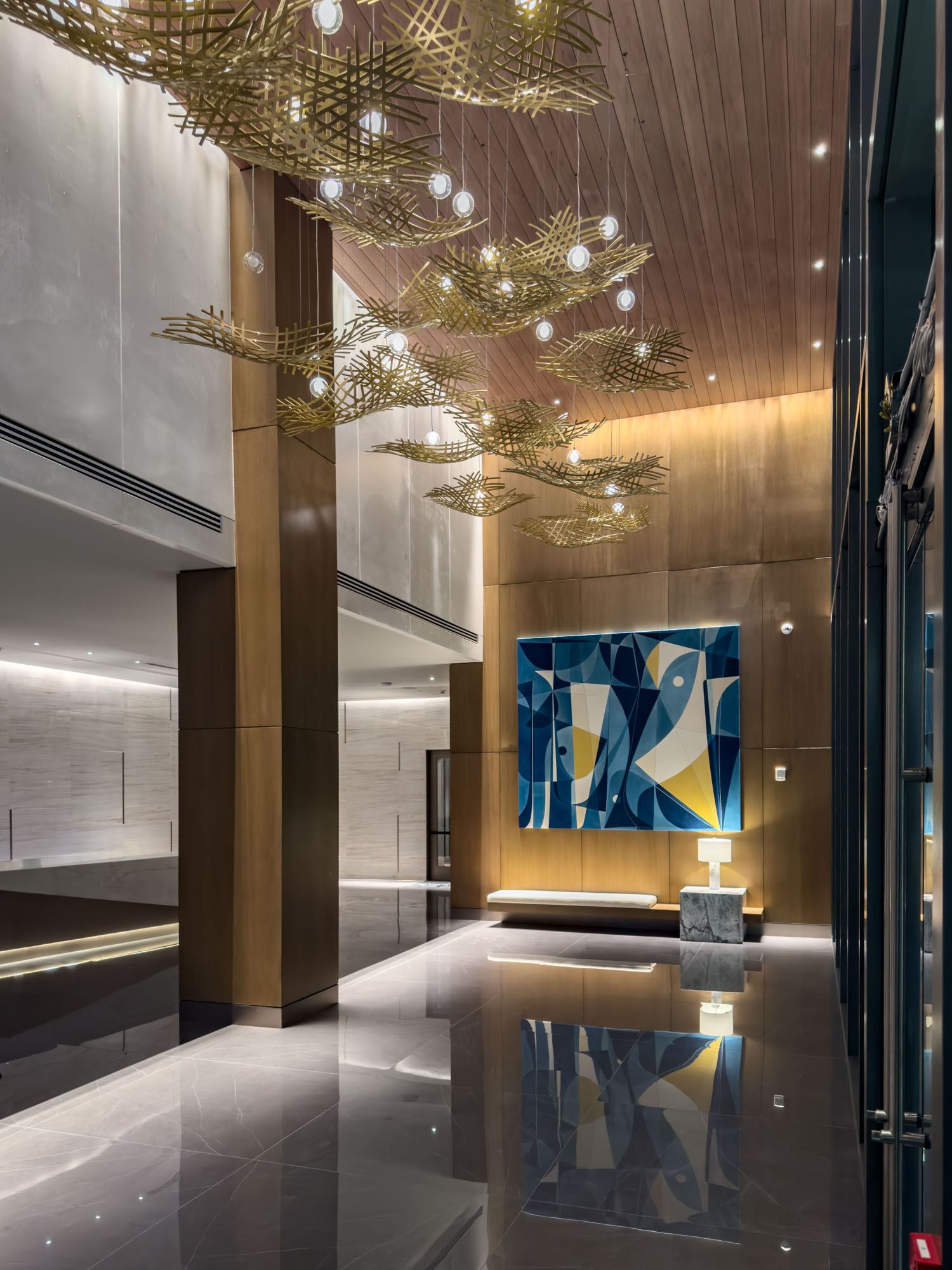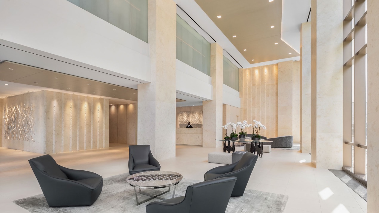 Lobby: Alhambira Limestone, Ataija Cream Limestone, Black Absolute Granite