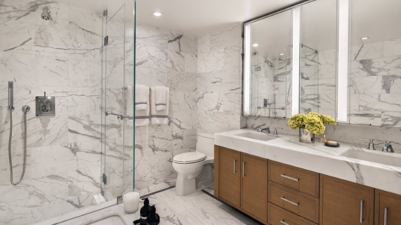 Bath Walls: 8″x16″ Bianco Carrara