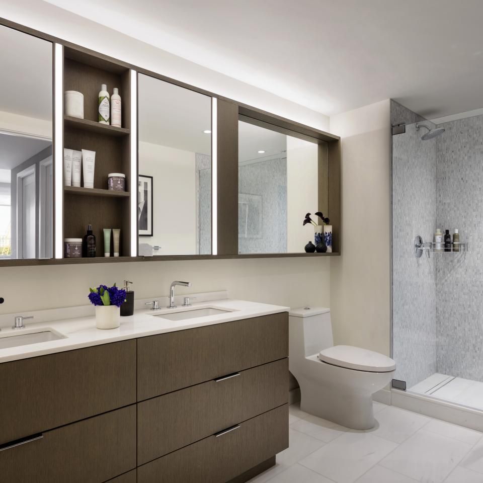 Condo Primary Bath Walls: Earth Grey Cut to Size