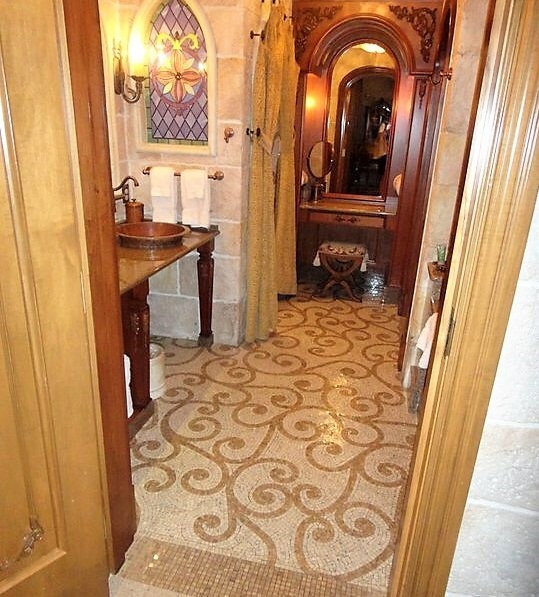 Bath Floor: Custom Natural Stone Mosaic