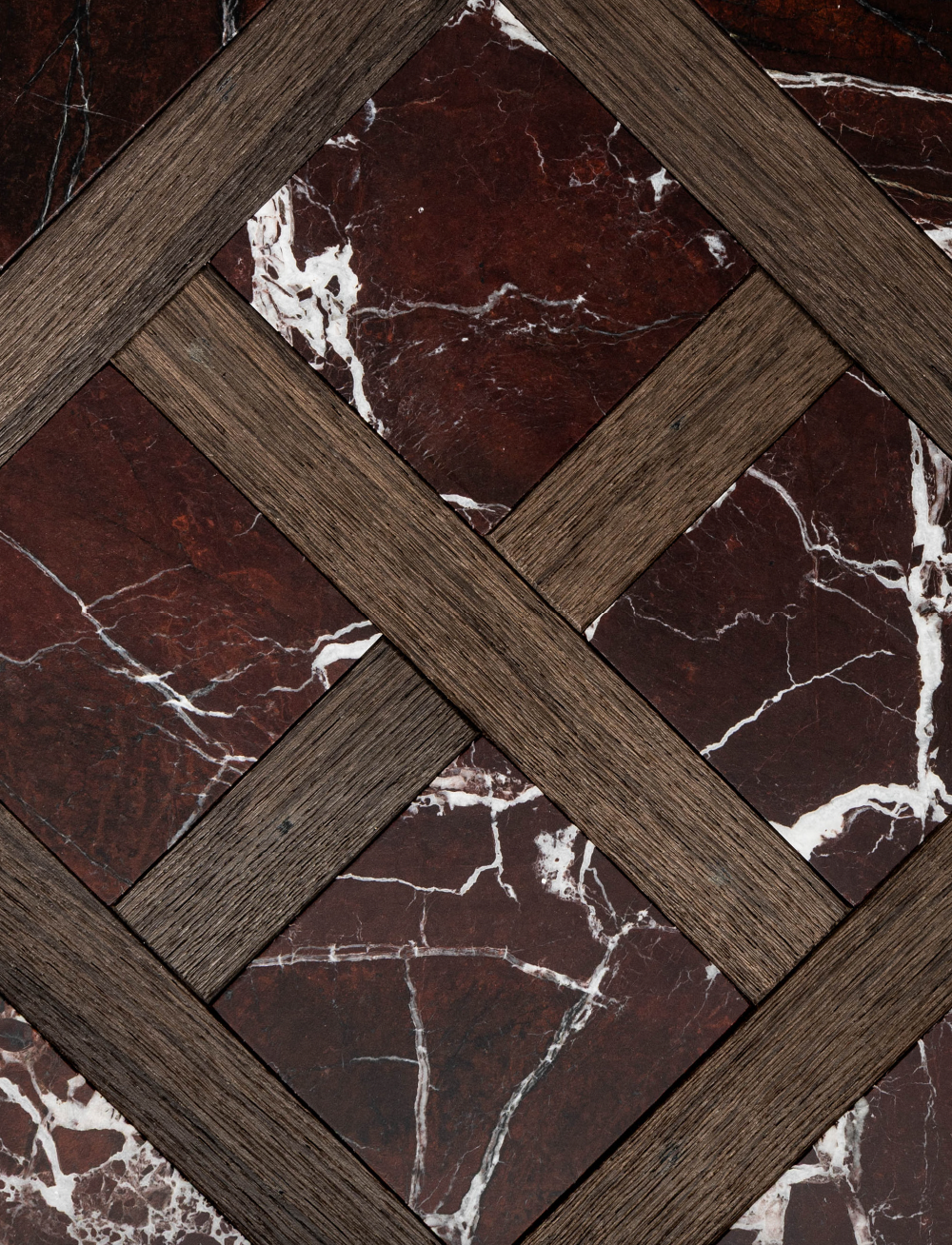 Specialty porcelain collection blending wood and stone aesthetics.